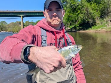 There is great deal of history linked to the Rappahannock River shad run. Pre-contact Indigenous cultures fished at the Fall Line in Fredericksburg, and shad were an important part of the local economy during the Colonial Era. The decline of Chesapeake Bay shad populations in recent decades is the focus of many ongoing scientific efforts, especially as it relates to centuries of local subsistence fishing. Thankfully, the Hickory shad run each spring in Fredericksburg is still very healthy and a great way to experience the thrill of fly fishng.